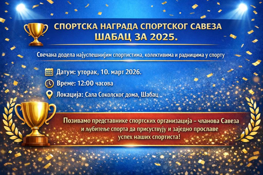Позивамо представнике спортских организација – чланова Савеза, као и све љубитеље спорта, да присуствују овом значајном догађају и заједно прославимо успехе шабачког спорта.
